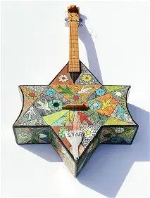 Top Row Lot 0001: Albert Artwell (1942-2018), Angel And Fire, 1980 Est. $800-$1,200 Sold for $1,200; Lot 0108: Ras Dizzy (Birth Livingstone) (C1930-2008), Bob Scott In The Midnight Guns Batle On The Fronteer,Est. $900-$1,200 Sold for $450; Lot 0058: Everald Brown (1917-2003), Star Guitar, 1994 Est. $2,000-$2,800 Sold for $2,000.