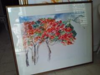 Twenty works of art from the estate of Dorothy Henriques Wells (1926-2018) have been stolen. We include a few images here: a c1970 clay jar by Cecil Baugh (stands approximately 2.5 feet tall and weighs 50/60 lbs); a 1985 charcoal/pencil drawing by Edna Manley, measuring 34" X 23" from Mrs Wells' private collection and a rare 1975 mixed media work depicting a flame of the forest and a 2006 watercolor by Wells. We bring these to your attention should they appear for sale or are seen in any homes, shops, galleries, auctions or exhibitions. All other works are watercolors and are itemized in the Police Report.